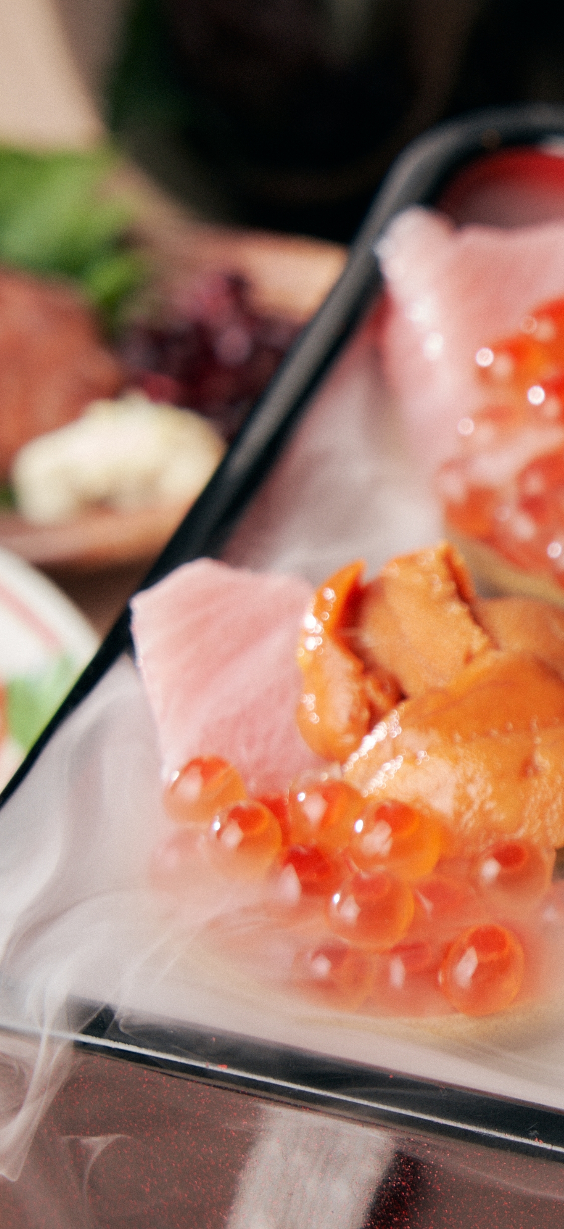 おいしいのは当然として、よりお客様に楽しんでもらうために“演出”にもこだわっています。名物「海鮮玉手箱」は、その蓋を浦島太郎のごとく開けると…。